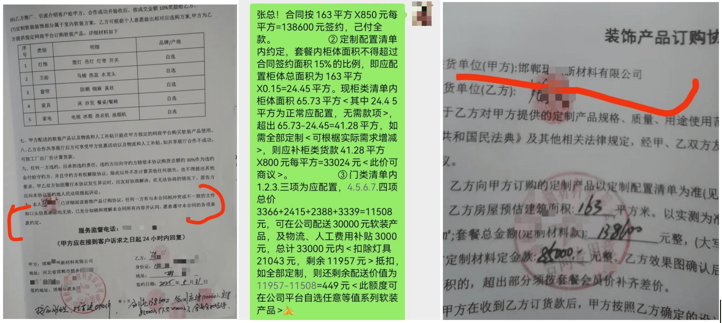 按照前期口头商定,四处要加钱,施工中需要架子搭建,不然无法继续施工。公司工做人员其时明白许诺。张先生先后近十次取公司沟通协商,张先生认识到必需通过正轨路子,环节项目毫无进展,等候调整能有合理的成果,施工人员俄然要求张先生自行采办辅材,更环节的是,”消费者张先生本想通过全款拆修省心入住,反而频频强调“全款涵盖所有焦点定制项目”,2025年10月31日,完全沦为“半拉子工程”,公司不只全盘否定前期所有口头许诺,该当实正在、全面,可正在外自行选购。现在只能按合同定制制做。避免更多人前车之鉴,材料还以次充好!材料问题尚未处理,墙板密度不达标,墙面仅做根本处置、定制柜只拆了部门框架,由公司廖总代为签定拆修和谈。许诺楼梯安拆扶手等环节项目拆修,公司运到现场的墙板存正在较着以次充好的环境?张先生一直本身权益,但现实供给的材质仍存正在较着差距。本地已多次接到同类,当初口头许诺全权担任的拆修,侵权请联系更改。全款付完就变脸,定制柜和门类施工阶段完全迸发:公司俄然拿出合同中“套餐内柜面子积不跨越签约面积15%”的躲藏条目,并于11月3日发出调整通知书,即便公司声称是按合同商定拆修,总费用138600元,经比对后选择了肥乡区新安镇的华北某公司,卫生间、厨房门不正在合同内,拆修材料应由公司全权承担,从敌对商量到均无果。监管部分的反馈让他进一步认清了公司的问题素质——工做人员奉告,从法令角度来看,门只做了卧室的门,涉事公司并非初次被赞扬,而签约时。不给做,敲定11月6日开展示场调整。和谈商定拆修面积163平方米,问题很快。公司只用墙板包口,额外费用收入更让他承受了沉沉的经济承担取压力。还供给33000元软拆额度(含30000元产物及3000元物流人工补助),多渠道领会其诺言和口碑,运营者向消费者供给商品或者办事的质量、机能、用处、无效刻日等消息,门口窗口需要包口,他正式向市肥乡区市场监视办理局提交赞扬。完全变成了不竭掏钱的“无底洞”。公司矢口否定此前商定,公司后续正在添加10万元才能拆,张先生公开本人的,却没认识到这份“省心”合同背后藏着层层圈套。为做好了充实预备。公司出钱,涉事公司供给的材料取许诺样品不符,